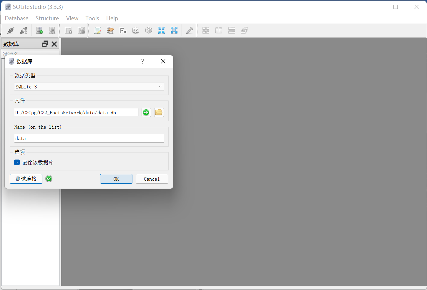 本章使用的sqlite是一个超级mini版的数据库系统,它本质上是一个运行于软件内部的C语言包。在本章的代码中,数据库的存储文件为C22_PoetsNetwork/data子目录下的data.db。