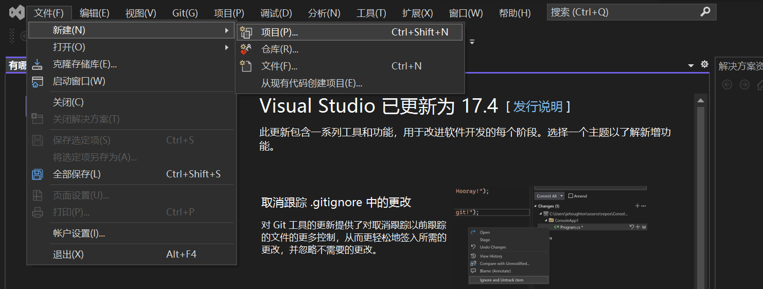 请读者注意,文件里还有一个名为关闭解决方案的菜单项。对于初学者而言,我们建议始终只打开一个项目。